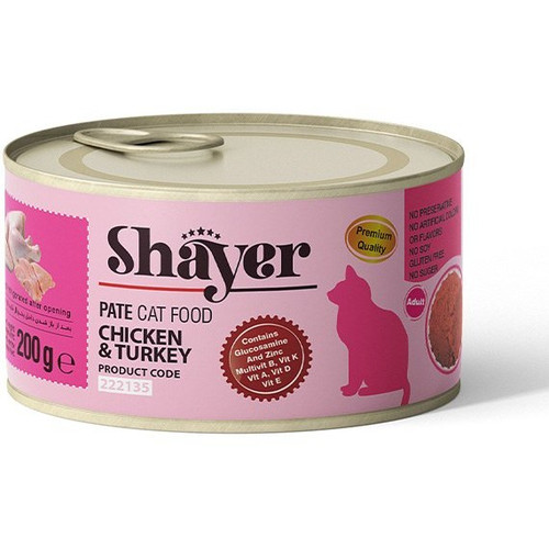 کنسرو پته گربه شایر با طعم مرغ و بوقلمون وزن 200 گرمناموجود