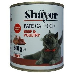 کنسرو پته گربه شایر طعم گوشت گاو وپرندگان وزن 800گرمناموجود