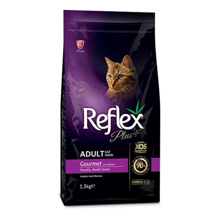 غذای خشک گربه خوش خوراک رفلکس پلاس (Reflex Plus Adult Cat Gourmet Chicken) با طعم گوشت مرغ، یک غذای کامل، مغذی و تامین کننده تمامی نیاز به پروتئین، ویتامین و مواد معدنی گربه های بالغی(بالای 12 ماه) که بد اشتها میباشند. ممکن است برخی گربه ها در انتخاب غذای خود سخت گیر تر باشند که در اصطلاح به آنها گربه بد اشتها میگوییم. این محصول رفلکس با تمرکز خود به این مشکل گربه ها توانسته دانه هایی خوش طعم در کنار حفظ خواص و ترکیبات مورد نیاز گربه تهیه کند.