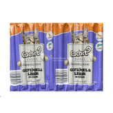 این استیک های مدادی شکل، خوراکی های جذابی برای پت دلبند شما هستند که می توانند شما را در امر آموزش و تربیت حیوان، یاری دهند. در تهیه این محصول از درصد بالایی گوشت مرغ استفاده شده است که این مهم سبب شده تا این محصول برای پت دلبند شما مقوی بوده و حاوی انواع مختلفی از ویتامین ها باشد. علاوه بر این، جگر موجود در فرمولاسیون این محصول می تواند به سلامت هر چه بیشتر پت، کمک شایانی نماید. همچنین باید به این مهم اشاره کرد که فرمولاسیون این محصول، فاقد مواد و افزودنی های شیمیایی و غیر مجاز، رنگ دهنده ها و طعم دهنده های مصنوعی، نمک، شکر و گلوتن است که این امر سلامت این محصول را برای پت شما، تضمین می نماید. تورین موجود در این تشویقی می تواند تاثیر بسزایی در بهبود بینایی گربه داشته و به سلامت هر چه بیشتر او، کمک فراوانی نماید.