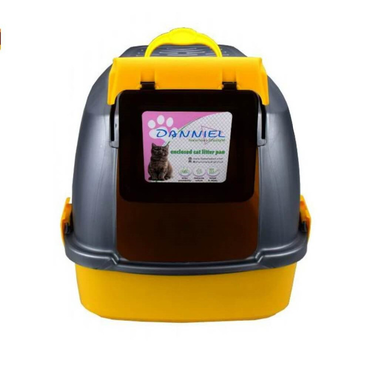 در محیط آپارتمانی شهری بدلیل وجود فضای کم، امکان داشتن توالت بدون سقف کمتر وجود دارد. با توجه به اینکه بوی فضولات گربه در محیط آزار دهنده و حس مشمئز کننده ای دارد، همچنین بسیاری از گربه ها علاقه دارند در فضای به دور از انسان ها برای توالت باشند، دنیل بر آن شد تا یکی از نیازهای اصلی صاحبان گربه را با تولید توالت مسقف درب متحرک بازشو پاسخ بگوید. این محصول از پلاستیک مرغوب و مقاوم تولید شده و همواره تلاش مجموعه دنیل بر آن می باشد تا کیفیت درخور مصرف کننده ایرانی به بازار عرضه نماید. این محصول دارای شیارهای تهویه در قسمت سقف است که همواره از بو گرفتن ظرف خاک مسقف جلوگیری می نماید. در طراحی و ساخت این محصول به بهینه سازی هرچه بیشتر آن توجه گردیده تا خاک به بیرون ریخته نشود. دسته نگهدارنده بسیار مقاوم طراحی و ساخته شده است. 5 قفل در اطراف ظرف خاک برای اطمینان و مقاومت بیشتر وجود دارد.