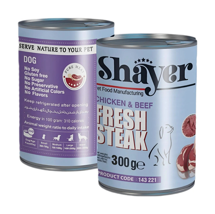 کنسرو سگ استیک با طعم مرغ و گوشت شایر وزن 300 گرم