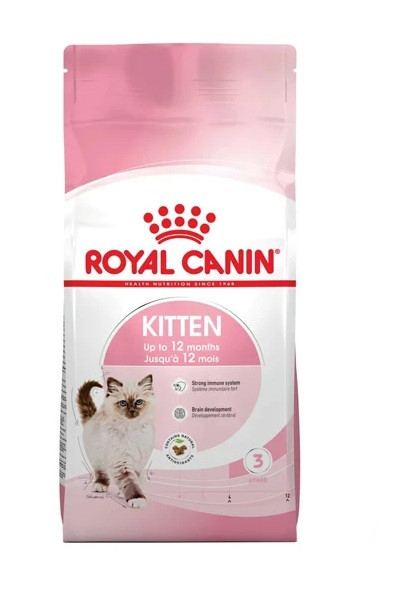غذای خشک گربه رویال کنین مدل کیتن (Royal Canin Cat Kitten) وزن 2 کیلوگرم که به صورت خشک توسط شرکت رویال کنین تهیه شده است برای رشد گربه های 2 تا 12 ماه مناسب می باشد. طراحی این غذا بسیار مناسب می باشد دانه های کوچک آن باعث شده است که جویدن و هضم غذا برای بچه گربه ها بسیار آسان و راحت باشد. بچه گربه 1 ماه پس از متولد شدن به فعالیت های جدیدی روی می آورد از جمله بازیگوشی ها و کنجکاوی های خاص که در اکثر گونه های گربه سانان دیده می شود. گربه ها در این مرحله از زندگی به یک سری خوراکی ها حساسیت دارند پس انتخاب کردن یک نوع غذای خاص و مختص به سن گربه برای ما مهم است تا گربه سالم و پر انرژی داشته باشیم. این محصول از فرمول های خاصی برای تقویت سیستم ایمنی گربه های جوان استفاده می کند.در هر وعده غذایی از این محصول انرژی لازم برای رشد سالم گربه وجود دارد. این غذا برای سلامت دستگاه گوارش بسیار مفید است و مورد توجه زیادی قرار گرفته است. غذای بچه گربه Kitten حاوی مقادیر زیادی از پروتئین های مفید برای بدن بچه گربه ها می باشد.