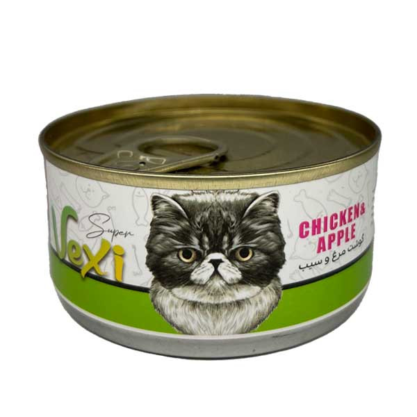 کنسرو گربه وکسی ( Vexi ) مدل های پته طعم گوشت مرغ و سیب یکی از بهترین برندهای ایرانی موجود در بازار می باشد. کنسروهای وکسی از مواد اولیه درجه یک تهیه شده است و تمام نیازهای تغذیه ای گربه های شما را برآورده می کند. محصولات وکسی بدون مواد افزودنی و گلوتن است. وزن کنسروها 110 گرم و تولید ایران است.