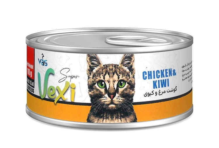 کنسرو پته گربه وکسی با طعم مرغ و کیوی وزن 110 گرم
