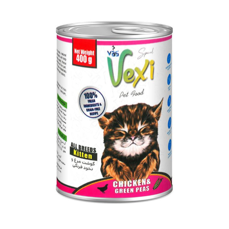 کنسرو پته بچه گربه وکسی با طعم مرغ و نخود فرنگی وزن ۴۰۰ گرم