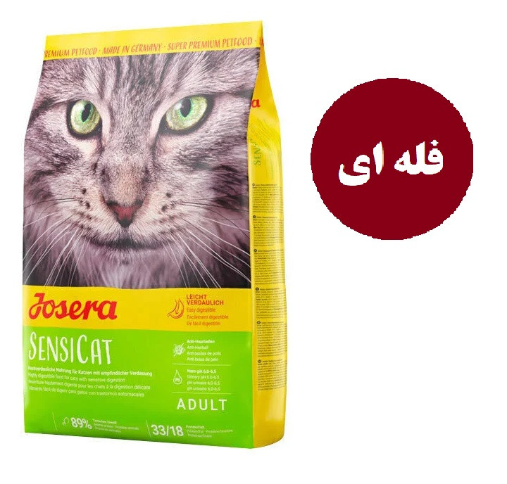 غذای جوسرا مدل سنسی کت با کیفیت سوپر پریمیوم برای گربه هایی که دارای گوارش حساس هستند، تولید شده است. این محصول حاوی ترکیبات با قابلیت هضم بالا یوده و دارای فیبر با کیفیت است.