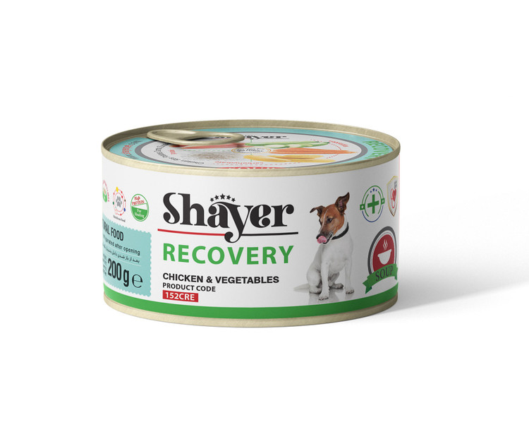کنسرو سگ ریکاوری شایر طعم سوپ مرغ و سبزیجات 200 گرم