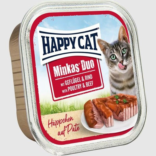 غذای مرطوب کاسه ای Happy Cat – برای گربه سانان کوچک. تا بتوانید گربه خود را نوازش کنید و همچنان به او غذای سالم بدهید. با غذای مرطوب Happy Cat همیشه می توانید تنوع را در منوی گربه خود تضمین کنید. دستور غذای Minkas Duo دو لایه خوشمزه را ارائه می دهد – پته و لقمه در سس. غذای مرطوب Happy Cat همیشه دو نوع غذای گوشت یا ماهی را برای لذت بیشتر ارائه می دهد.