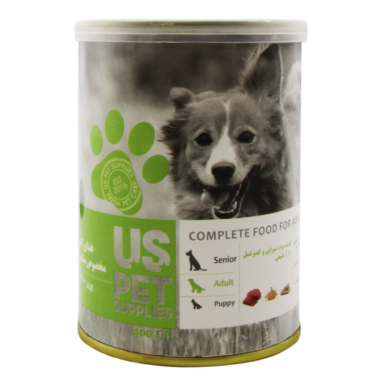 کنسرو پته سگ یو اس پت طعم گوشت بره، سیرابی و کدو وزن 400 گرم