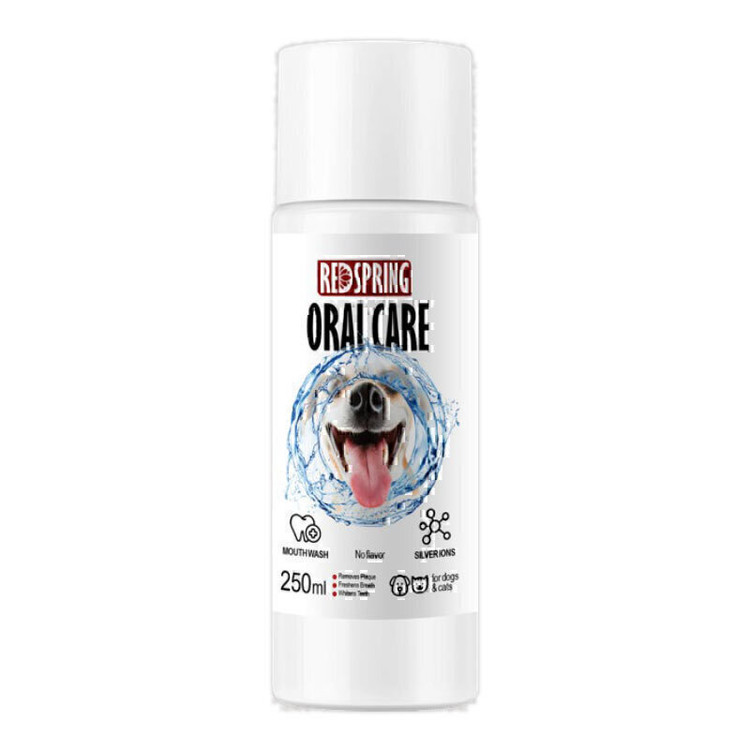 دهانشویه بر پایه نانو نقره مخصوص سگ و گربه رد اسپرینگ حاوی یون نقره است و باعث افزایش طول عمر دندان ها می شود . این دهانشویه بوی بد دهان و پلاک های دندانی را از بین می برد و دارای PH طبیعی و خنثی است. در تهیه این محصول از مواد شیمیایی و نگهدارنده ها استفاده نشده است و برای همه نژادهای سگ و گربه مناسب است. حجم محلول 250 میلی گرم و تولید ایران است.