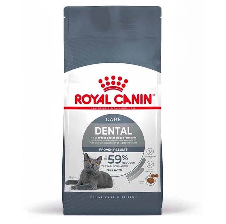 غذای خشک گربه دنتال رویال کنین به طور اختصاصی برای مراقبت از دهان و دندان این حیوانات فرموله شده است. این غذای خشک گربه از تشکیل شدن تارتار و پلاک دندانی جلوگیری می کند تا درنتیجه سلامت و بهداشت دندانشان تضمین شود. لازم به ذکر است که، مواد مغذی موجود در این غذا به کلسیم بزاق گربه متصل شده و باعث کاهش تجمع پلاک می شود.