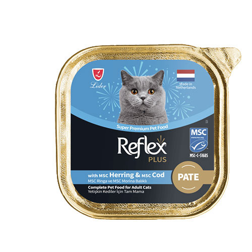 ووم گربه رفلکس پلاس طعم شاه ماهی و ماهی کاد وزن 85 گرم